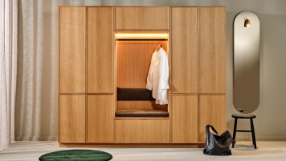 Nyheden Harmoni Eg fås som en komplet serie til hele dit hjem. På den måde kan du få en elegant rød tråd af egetræ igennem hjemmet - både til køkkenet, på badeværelset, til din garderobe og som opbevaringsmøbler til fx stuen.