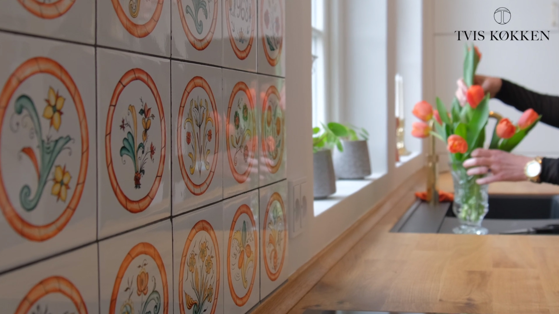 Iben og Mads genbrugte fliser fra det gamle køkken for at bevare husets sjæl og stil.